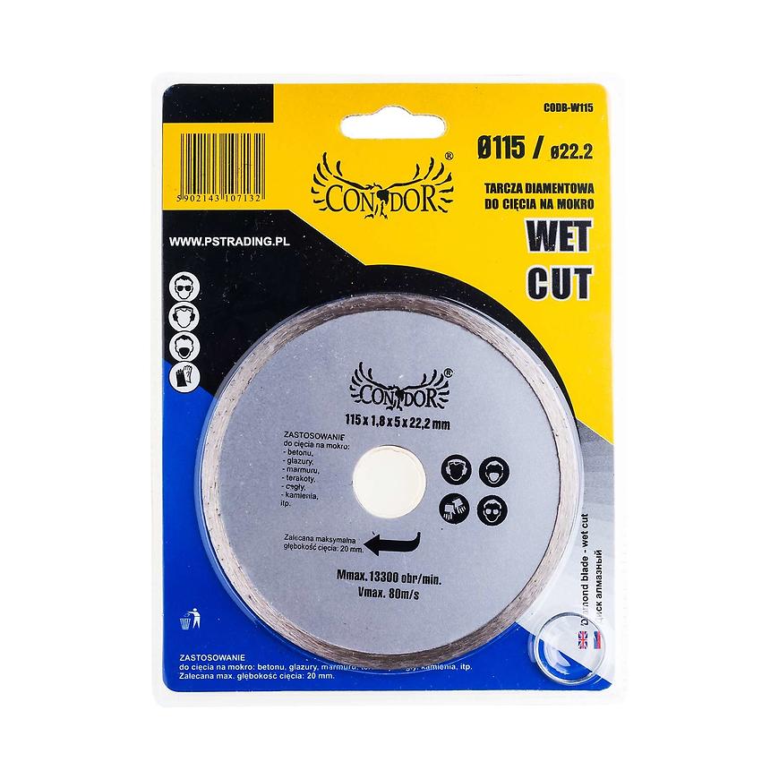 Diamantový kotouč, na mokro, plný, 115 mm, Condor od známé značky Condor - tento artikl doporučujeme v úžasné akci za 89 Kč. Ceny zboží a skladovou dostupnost neustále aktualizujeme. Dopravné bez jakéhokoliv poplatku se nyní vztahuje na objednávky s minimální hodnotou Kč. Přejeme vám spokojenost z výhodného nákupu.