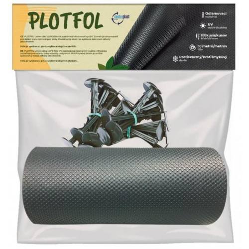 Parametry produktu Fólie LDPE 1,4 x 10 m, š. 25 cm, 20 ks hřebíků, odl. nůž, PLOTFOL