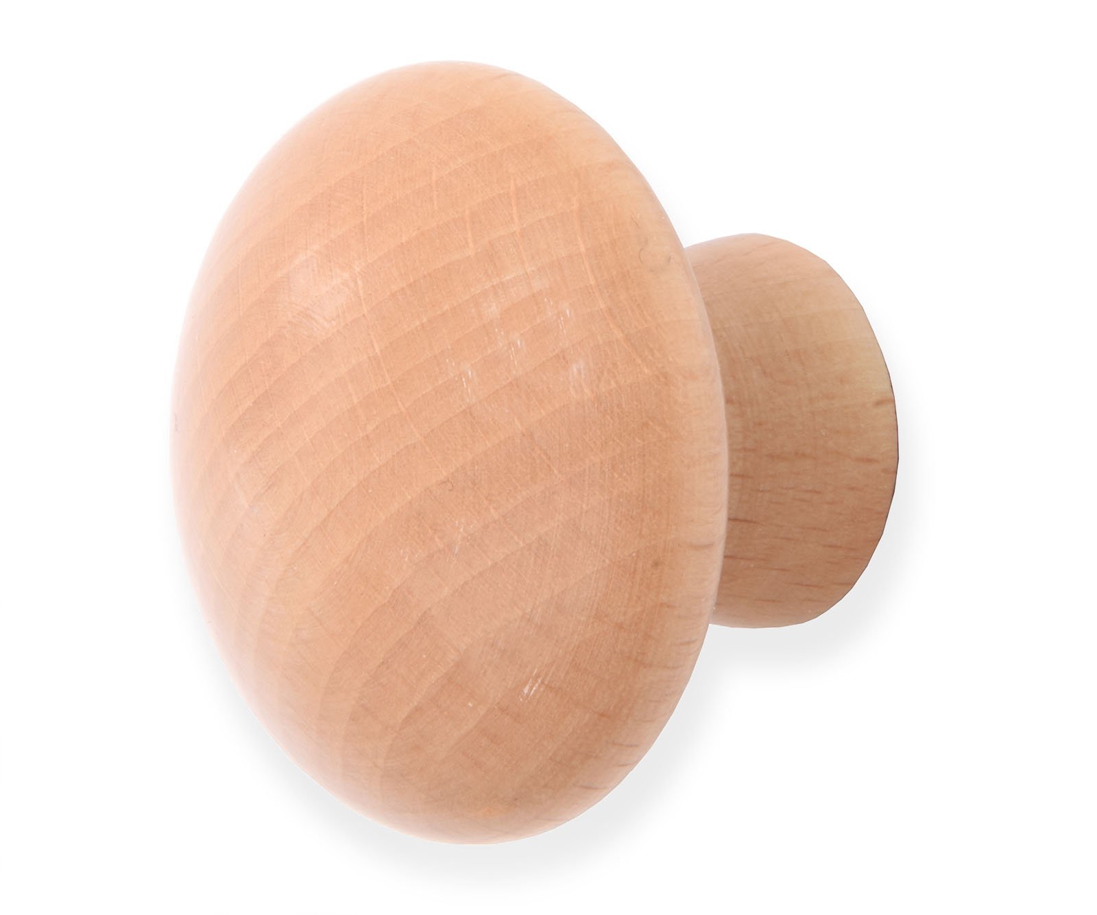 Knopek Jokl č.3 dřevěný Dřevěná úchytka (knopek) ve tvaru menšího hříbku. česká výroba v noze je předvrtaný otvor pro připevnění (o průměru cca 2,5-3,0 mm) materiál: dřevo povrchová úprava: v tabulce s variantami průměr hlavy v nejširším bodě: 43 mm průměr nožky v místě uchycení k nábytku: 22 mm celková hloubka: 35,5 mm tolerance: ± 1,5 mm