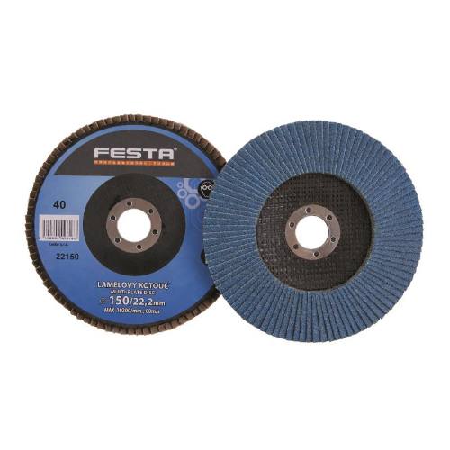 Kotouč lamelový brusný na kov a nerez, Ø 150 x 22,23 mm, zrnitost 40, FESTA