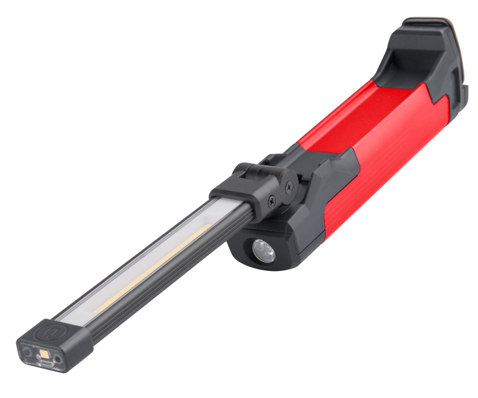 LED svítilna pracovní multifunkční nabíjecí Extol Light 43145 Multifunkční pracovní světlo lze držet v ruce, postavit na stůl, magnetem připevnit na železo, svorkou upevnit na nosníky (do 4 cm) nebo zavěsit na lano. magnet se světlem na konci otočného ramene jde použít k vytahování zapadlých šroubků dvojitý stisk spínače zapne světlo podržením spínače aktivujete funkci nastavení jasu červené výstražné světlo nabíjení přes USB-C kabel světelná indikace nabití baterie Technické parametry: módy světla: prostorové světlo COB 100% - červené - stmívání; svítilna LED 100% - stmívání; osvětlení LED 100% světelný tok (prostorové světlo): 400 lm světelný tok (svítilna): 160 lm světelný tok (osvětlení): 20 lm čas svícení (prostorové světlo): 3-5 hod. čas svícení (svítilna): 17 hod. čas svícení (osvětlení): 25 hod. baterie: Li-Ion 3,7V 2600mAh nabíjení: USB-C krytí: IPX4 hmotnost: 180 g