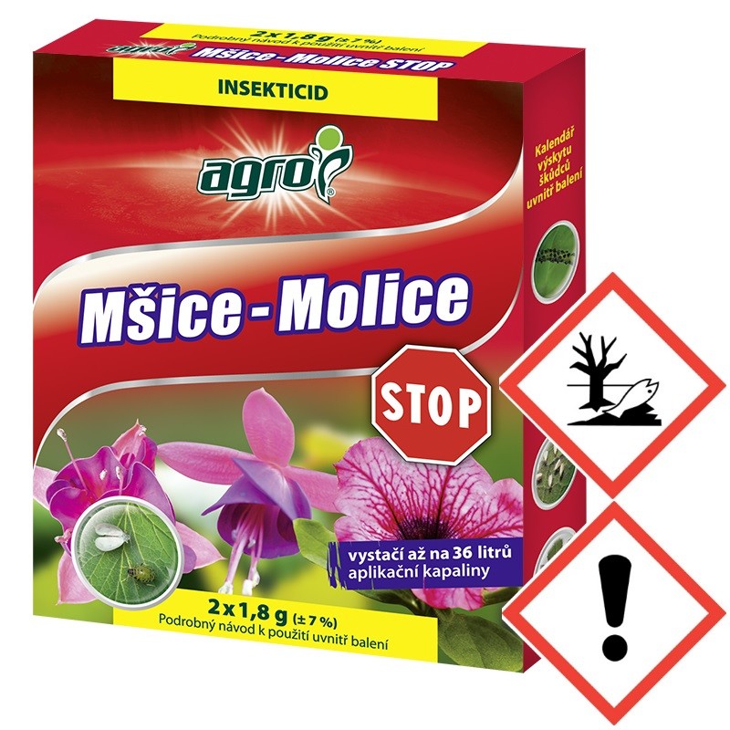 AGRO Mšice - Molice STOP je velmi efektivní insekticid působící na všechna vývojová stadia škůdců. Přípravek Mospilan 20 SP působí jako dotykový a požerový jed. Má dlouhodobý reziduální (zbytkový) účinek. Velmi účinně působí proti hmyzu jako je mandelinka na bramborách; mšice na rajčatech, paprikách, jádrovinách a okrasných rostlinách; molice na okrasných rostlinách; obaleč na jabloních; atd.