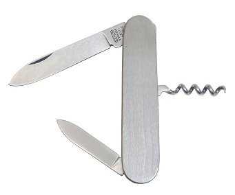 Nůž Mikov 100-NN-3B Stovka Kapesní zavírací nůž s nerezovými čepelemi a střenkou. Součástí je: velká čepel malá čepel vývrtka Technické parametry: materiál čepele: nerezová ocel 420 - 55HRC materiál střenky: nerezová ocel délka: 90 mm délka čepele: 70 mm šířka čepele: 12 mm hmotnost: 57 g