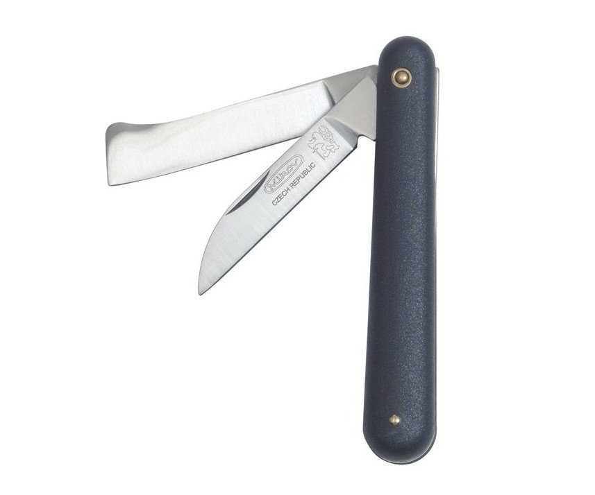 Nůž Mikov 805-NH-2 Select K Zahradnický nůž má 2 zavírací čepele, které jsou speciálně navržené pro roubování a očkování dřevin. Technické parametry: materiál čepele: nerezová ocel 420 - 55HRC materiál střenky: plast délka: 100 mm délka čepele: 60 mm šířka čepele: 15 mm hmotnost: 75 g pouzdro: PVC