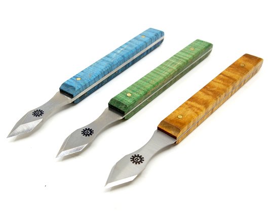 Sada rýsovacích nožů 3ks Richter Narex 8689 99 Jubilejní sada 3 rýsovacích nožů, vyrobená ke 105. výročí založení značky Narex, původně pod názvem Richter Extra. limitovaná edice v luxusní papírové krabici pevné čepele z nerezové oceli s výřezy pro prsty speciálně barvené a leštěné střenky z figurovaného javorového dřeva střenky jsou k čepeli pevně připevněny mosaznými nýtky tenčí čepele umožňují přesnější značení silnější čepele nabízejí větší odolnost síla čepele: viz níže Sada obsahuje: 0,75 mm 1,2 mm 2,5 mm