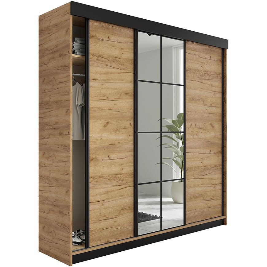 Parametry produktu Šatní skříň Lamaro 250 dub craft zlatý + černé prvky