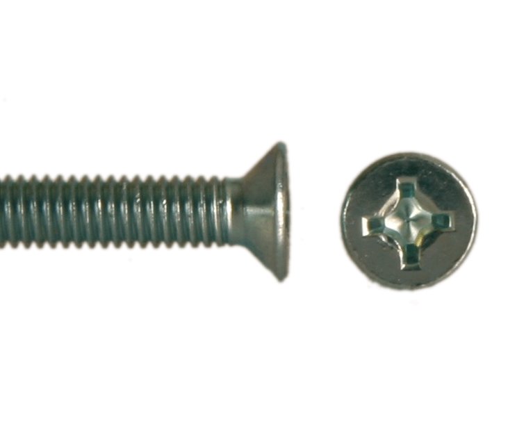 Šroub se zapuštěnou hlavou na křížový šroubovák, bílý pozink DIN 965 bílý pozink zapuštěná hlava Rozměry (průměr šroubu x délka šroubu) a ceny v tabulce s variantami